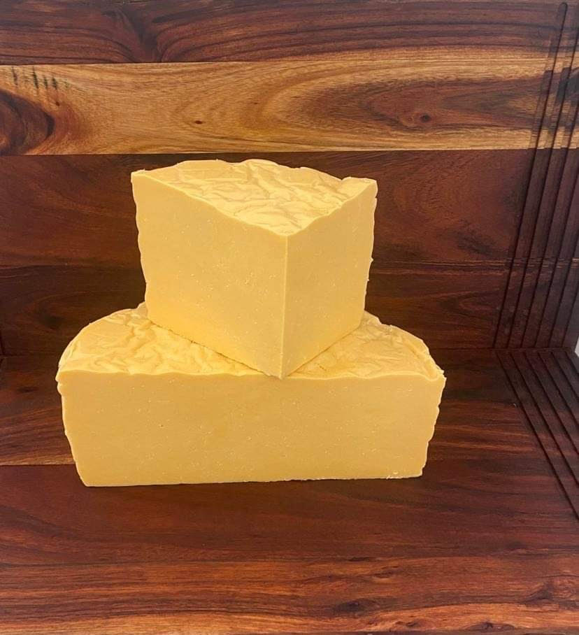 Cheddaring is a process where the curd is repeatedly stacked, cut, turned, and pressed to remove as much whey as possible from the curds before it is pressed in 4kg wheels and aged up to 2 years.